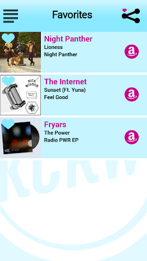 Save your favorite tracks on the go - just click the heart on the album art. Your song will be saved to a per-device list, accessible by clicking the heart in the top right corner of the app.