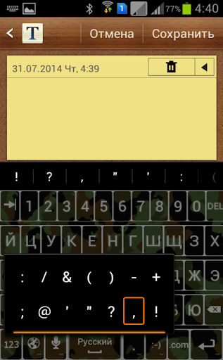 - при длительном нажатии клавиши "ь" появляется выбор "ъ" знака, а клавиши "е" появляется буква "ё"