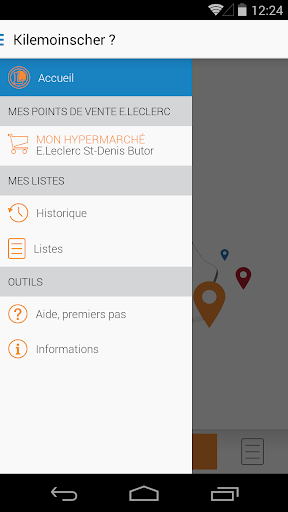 Lors du premier lancement, merci de sélectionner le magasin E.Leclerc avec lequel vous souhaitez comparer les prix, touchez le bouton "Accueil" puis "Mon Magasin".