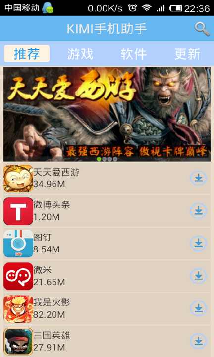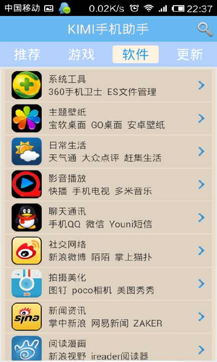 KIMI手机助手通过抓取91、百度、360、豌豆荚等APP市场的应用数据为用户提供了数以百万计的应用。