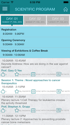4. Scientific Program (Like Each Lecture / Write Notes on each Lecture / Synch each Lecture time to your iPhone Calendar)