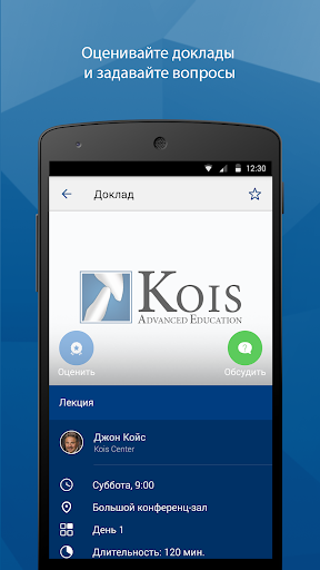 Кроме того, с помощью приложения вы можете задать вопросы докладчику и оценить доклады.