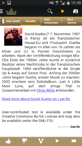 Außerdem kannst du Biografien lesen und Links zu anderen Interpreten erhalten.
