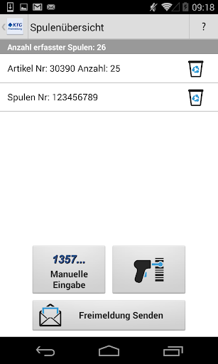 Mit diesem App können freie, nicht mehr benötigte Kabelspulen einfach und schnell zur Abholung an die KTG gemeldet werden. Die Spulennummern können sowohl gescannt als auch manuell eingegeben werden. Die Bedienung ist leicht und selbsterklärend, da das App mit Hilfetexten und Bildern ausgestattet ist. Das App ist kostenlos. Vor dem ersten Einsatz ist eine einmalige Registrierung bei der KTG erforderlich.