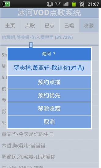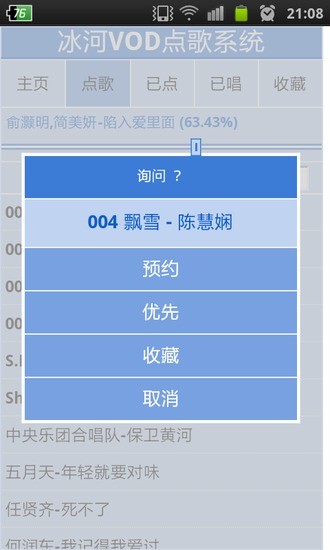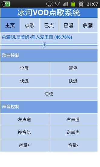 该软件通过手机与计算机联网实现在家唱K的乐趣只要您家中有一台电脑、一部手机、一个音箱、一个麦克风就可以在家像地在歌厅一样地K歌了您需要在手机上安装android手机点歌客户端软件,还需要在电脑上安装一个服务器端软件(请到http://www.yyasp.net下载)