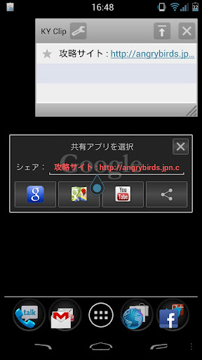 クリップボードの履歴はクリックすることで、グーグル検索、電話、地図、Youtubeなど色々なアプリにシェアできます。