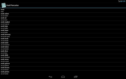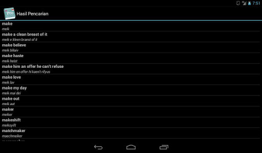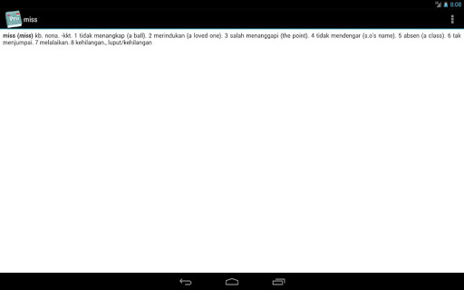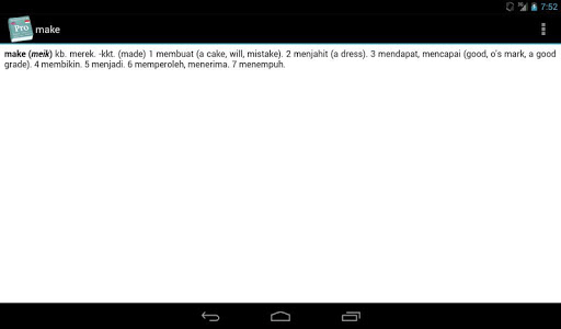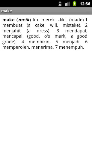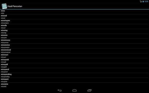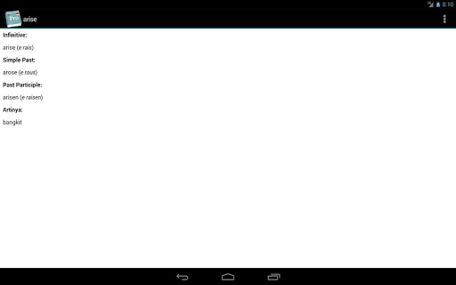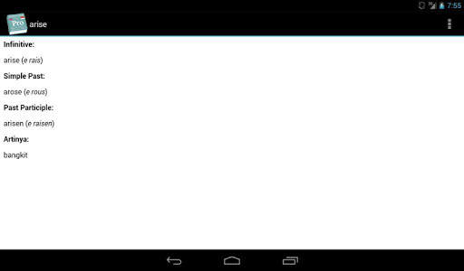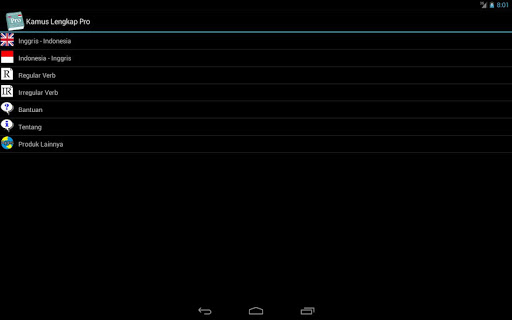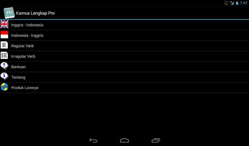 It supports English - Indonesian, Indonesian - English, words, phrases, pronunciations, regular and irregular verb features including infinitive, simple past, past participle and the meaning in Indonesian.