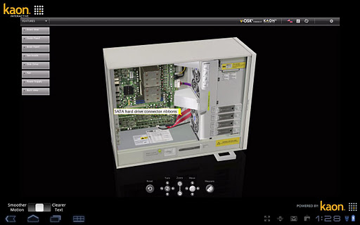 The Kaon v-Stream® App provides sales and marketing professionals with interactive 3D product and solutions demonstrations on Android tablets with NVIDIA Tegra 2. This version is optimized for Galaxy Tab 10.1 and XOOM.