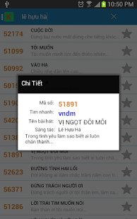 Đây là chương trình giúp tìm kiếm thông mã số bài hát khi bạn hát karaoke. Hiện tại chương trình hỗ trợ tìm kiếm cho đầu 5 số Ariang và đầu Califonia. Danh sách tìm kiếm được cập nhật liên tục.