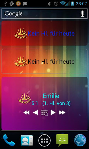 Das kleinere Widget zeigt Dir den Heiligen des Tages, falls am aktuellen Datum ein Gedenktag ist.
