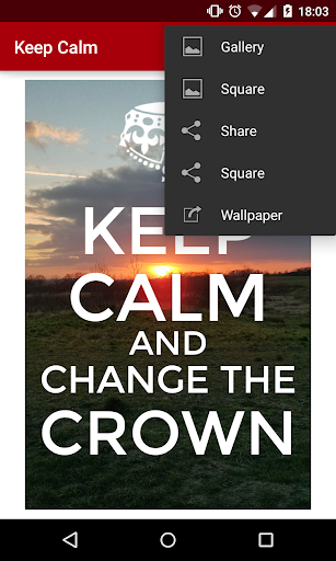 Keep Calm is the best free Keep Calm and Carry On app available on Android. You are able to modify the text, background color and icon (from a choice of fifty). Unlike ALL other Keep Calm apps you can have an unlimited number of lines of text.
