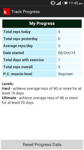 ★Workout screen with timer, text instruction, visual guide and/or vibrate to guide you to do Kegels exercise properly