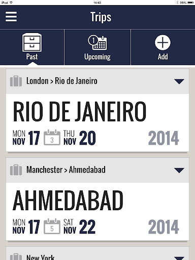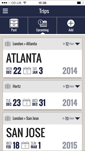 • Save trip itineraries into your personal trip list and view past, current and future trips.