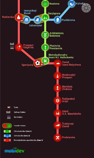 Beautiful and easy to use Kharkiv Metro Map. Use it to quickly navigate through the map, see how to pay fares and find out the useful information about the Metropolitan.