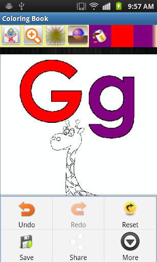 ABC, Number, Shape coloring books combines zoom/pan, filling, brushes and clipart libraries to increase creativity of kids, toddles, pre-school childrens.