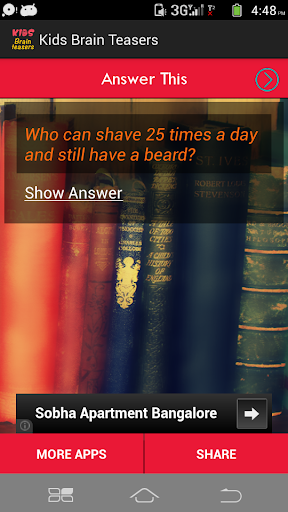 Not only kids but even parents would love to solve these brain teasers. They are funny, witty and would make you think really really hard and at the end you'll find the answer was so easy.