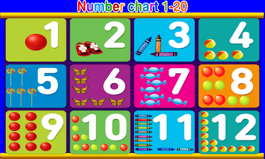 Kids Learn Numbers Train is an educational App for Learning Numbers for toddlers, preschoolers and kindergarten kids. It has several features like number charts, games and cartoon train that help kids learn numbers from 1 to 20.