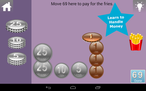 These exercises help kids practice their scientific concepts in a practical way using made-up units of measurement. The mathematical concepts practiced include fractions, count-by-fives, addition by tens and hundreds, total using 25s, 10s, 5s and 1s. Some of the exercises can be solved in more than one way. Kids experiment with solutions as they play.