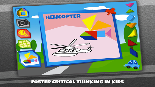 A simple yet fun and educational tangram puzzle game designed to foster critical thinking, spatial rotation skills, and an intuitive sense of geometry in children. This edition teaches kids about transports through play, audio and visual association.