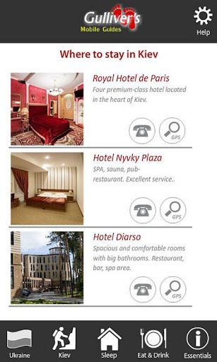 Gulliver’s Audio Guide to Kiev contains most essential travel information for any travel lover. Best sights and attractions with images, sound and map locations, useful addresses, hotels, restaurants, medical centers, local info, services and embassies in Ukraine.
