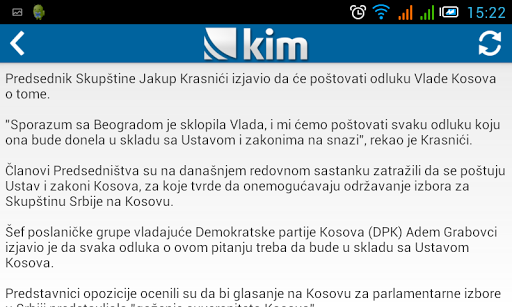 Najnovije informacije i sadržaji Kima na vašim mobilnim uređajima; vesti iz svih društvenih sfera, politike, kulture i sporta, kao i hronika, saopštenja i prenošenje vesti drugih medija i agencija; emisije i video prilozi u našoj produkciji; blog stranica.