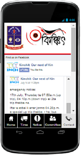 This is an app for University of Dhaka Students who ride the University bus- 'Kinchit', Bus time schedules and Notices. You can also look for other features here.
