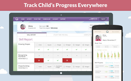 Monthly subscribers receive new games, new interactive books and feature upgrades on a regular basis. Monthly subscribers are also able to synchronize child's information across multiple devices, back up child's data, access child's info on the web and receive progress report cards via email.