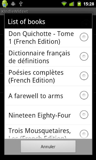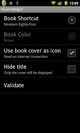Kindle Widget enable you to add home screen shortcuts to your preferred Kindle Books. You can customize each shortcut by setting the color of the icon.