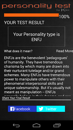 The algorithm of this personality type test was tested several times before going public. What we recommend you to check if the result is actually your personality type is to re-do the test to check if you answered the questions in the best way. Take your time to answer the questions.