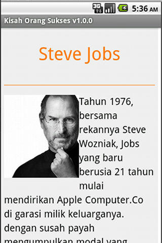 Apliasi android yang memberikan cerita inspiratif untuk memotifasi anda. Disajikan kisah sukses microsoft, facebook, apple starbucks dan lain-lainnya.
