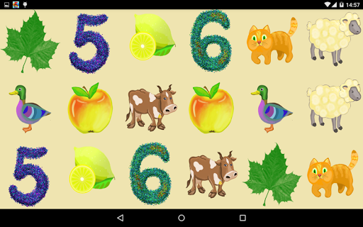 Das Spiel beinhaltet drei Kategorien – Zahlen, Tiere und Obst.
