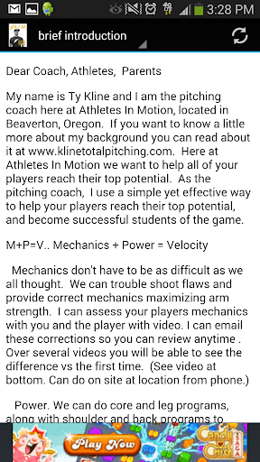 I am a private pitching instructor, and coach at Athletes In Motion, in Beaverton, Oregon. This is a testing app as far as reaching out to find business. I plan on making a pro version of the app with the ideas and videos that I am asked to make for potential clients and customers. if you have any ideas on what you would like to see as far as Videos, articles. Anything to help pitchers succeed.