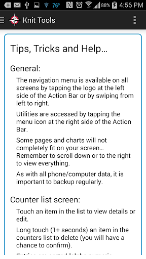 Knit Tools is an easy to use knitting and crochet tool kit. You can set up row/repeat counters for each of your projects and keep track of your knitting needles and crochet hooks with the inventory module. It features several handy calculators and unit converters and a knitting abbreviation glossary.