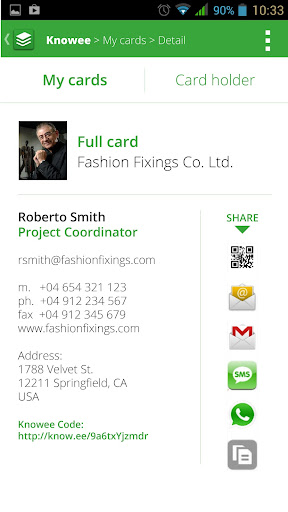 The idea behind Knowee is that business cards are persistent, this is, You cannot make changes in a card. If you need, you create a new one and share it again as you would do with traditional cards. A card that is given will never change! Think of the implications of this idea.