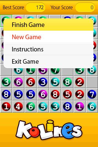 Four or more balls placed in one line (horizontally, vertically or diagonally) disappear. And two balls of the same color can be combined in one, in this case the # of the new ball will be equal to the sum of #s of the balls. For example, if green ball with #3 is combined with green ball with #5 then we will have one green ball with #8. The only limitation is that the sum of combined balls cannot be more than 9. Points are given for the disappearance of the balls. The more balls in the line and the higher sum of the disappearing balls - the more points you will get. For example, the maximum possible amount of balls, that can disappear in one move is 22; if all the balls have #9, the sum of the given points will be 396. Minimum you can get 8 points for a line of 4 balls with #1 on each. Each move of the balls that does not cause the disappearance of the line is fined with appearance of several balls on the game field.