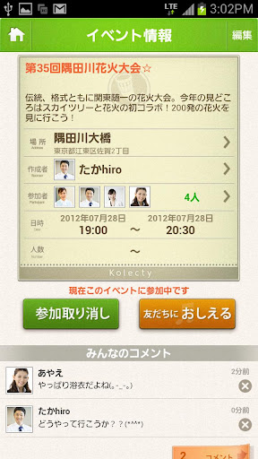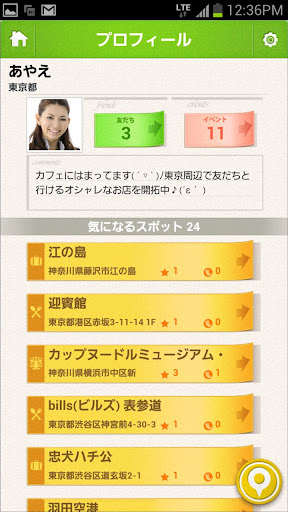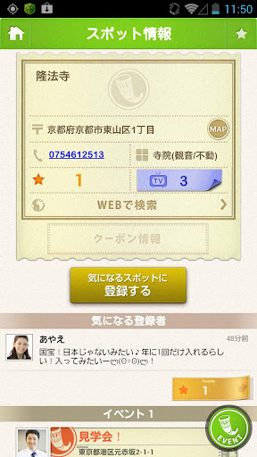 - 気になるスポットにイベントを作成してFacebookのウォールへ投稿できます。