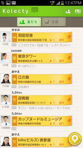 - 友だちが登録したお店をタイムラインで時間順に見ることができます。