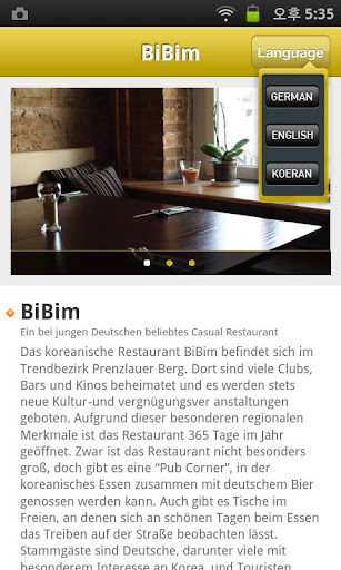 - The Korean Restaurant Guide 2012, Germany makes listings available in German, English, and Korean.