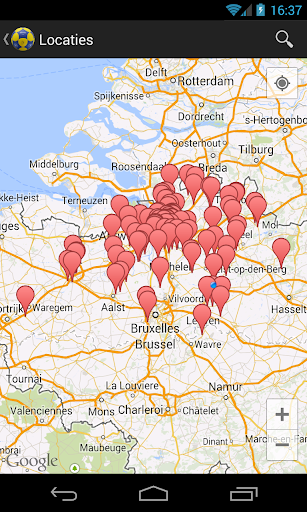 * Kaart met alle korfballocaties in België, zowel zaal als veld