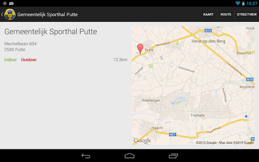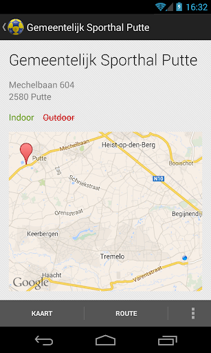 * Details van alle korfballocaties inclusief adres en routebeschrijving