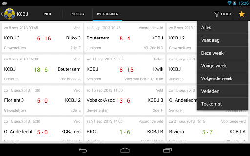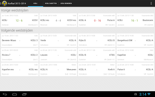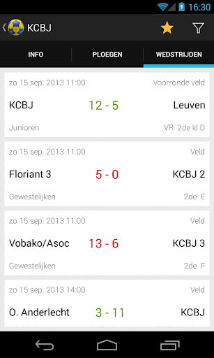 - Wedstrijduitslagen en klassementen van alle reeksen (senioren en jeugd)