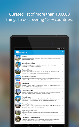 • Choose the best places to visit from our curated list of more than 100.000 attractions, covering 150+ countries - never miss out on the best sightseeing again