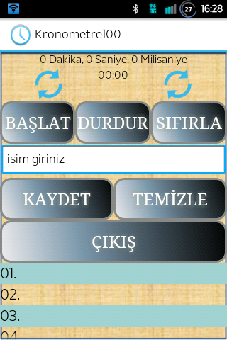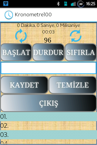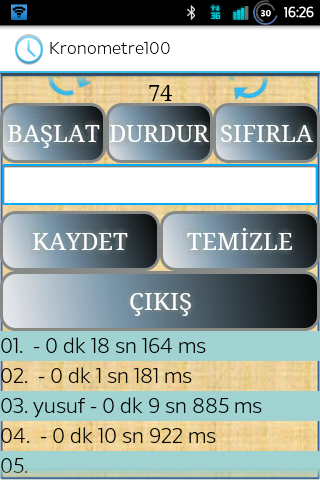 Sayaç programı yarışlarda kullanılabilecek bir programdır. Sayaç, 100 kişiye kadar kayıt imkanı sunar.Sayaç programı milisaniye bazında ölçüm yapabilen bir programdır. Kronometre programı ayrıca okuma yarışmalarında da kullanılabilir.