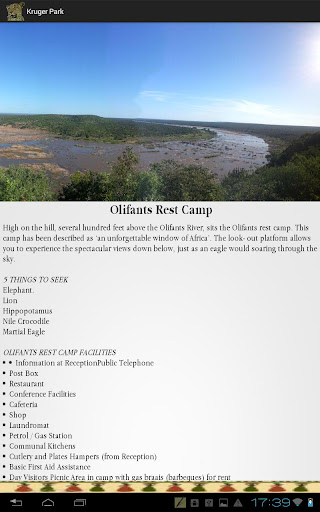 -General information including gate and camp opening and closing times, speed limits, shop and restaurant opening times, seasonal temperatures, rules and regulations and all important contact numbers.
