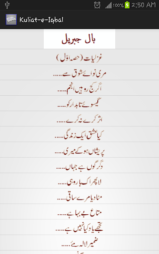 Contains the complete collection of Urdu poetry and includes the 4 books: