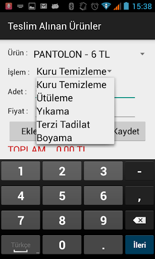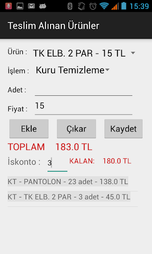 Kuru Temizleme Programı Android uygulaması;