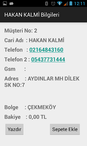 • Müşteriyi telefon ile arama ihtiyacınız olur ise müşteri bilgileri ekranından tek dokunuşla arama imkanınız vardır.