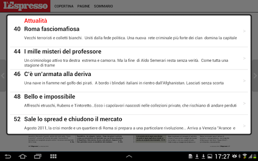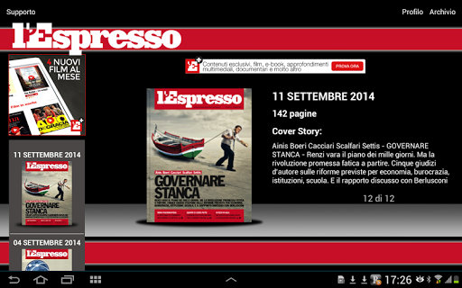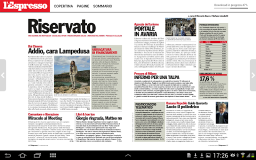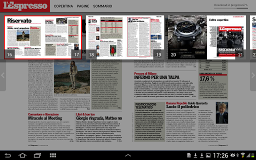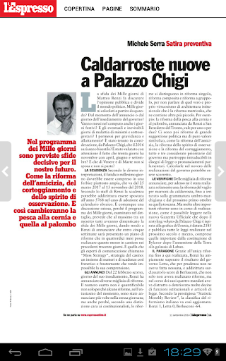 L’applicazione de l’Espresso ti permette in ogni momento di leggere e sfogliare sul tuo tablet Android il settimanale in edicola, con una serie di funzionalità che ti faciliteranno la fruizione degli articoli.
