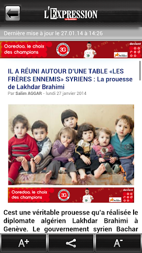 Une option d’agrandissement du texte est également disponible, pour vous permettre un meilleur confort de lecture. Le dossier favoris vous permettra de garder précieusement les articles choisis dans votre application, une fois l’actualisation effectuée, plus besoin d’être connecté, profitez librement de l’Expression en mode Offline…