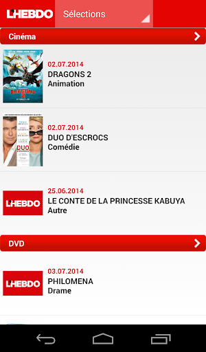 L'application offre chaque jour des sélections culturelles (cinéma, livres, DVD, disques et expositions).